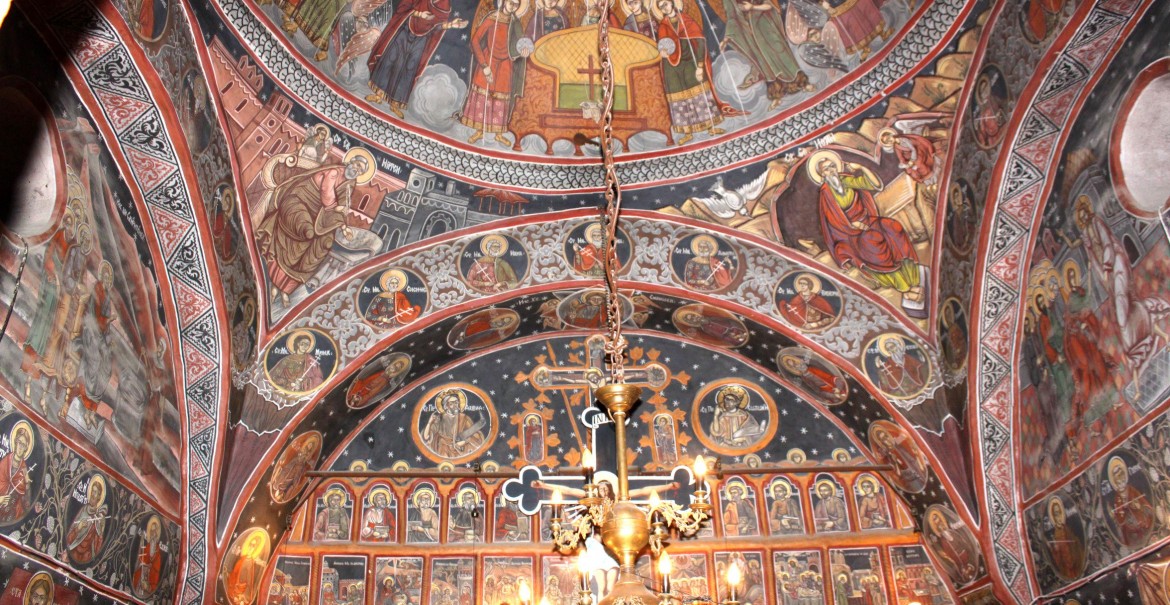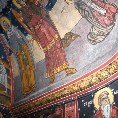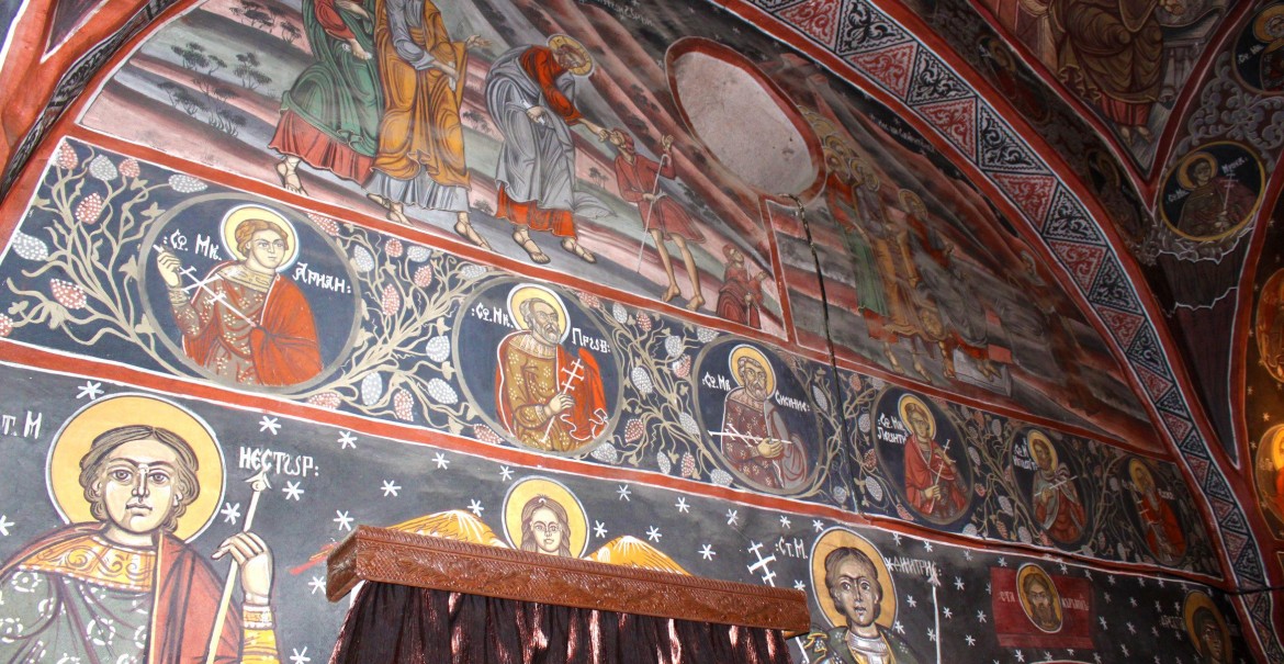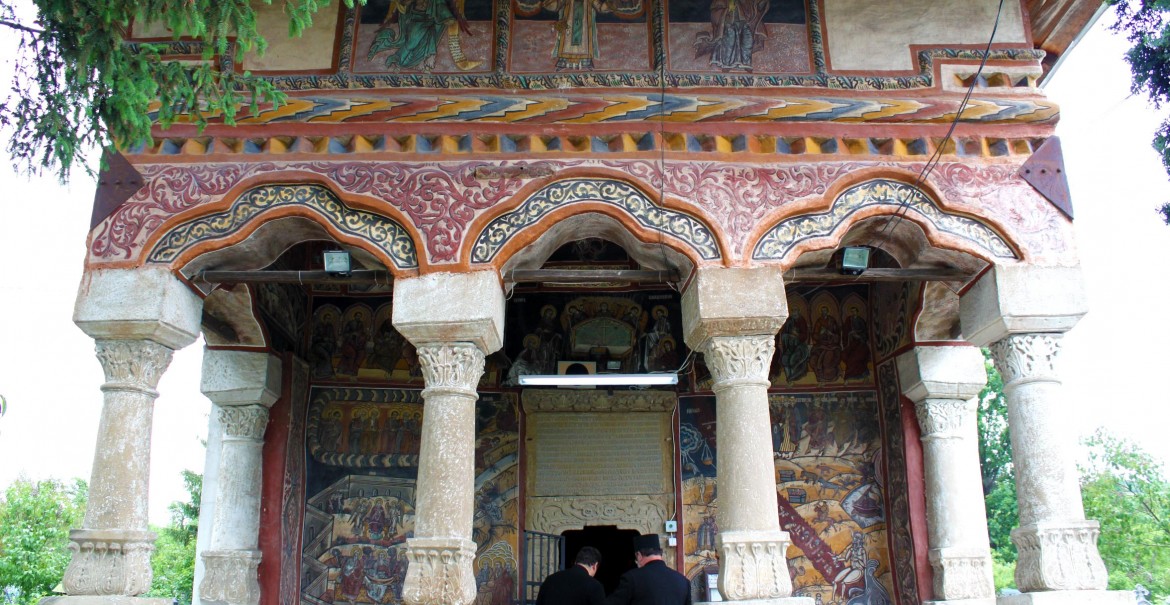 Pisania : „Cu ajutorul Sf. Troițe s-a zidit această sfântă și dumnezeiască biserică din temelie prin hramul Sf. Prooroc Ioan Botezătorul și Sf. Arhiereu Nicolae și SF. Prea-podomia Paraschiva. Este zidită în zilele Măriei Sale Io Sutu Vodă (Mihail „Draco” Sutu Vodă).